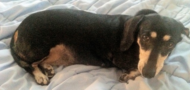 Flashlights and candles. Radio blaring about area-wide power outages. Temperature climbing. No dog was happy.