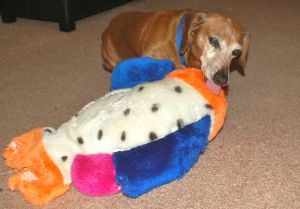 Before the heat got to Jake, he thought it was fun to play on the carpet.