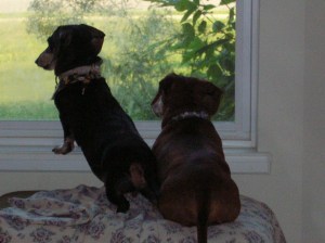 In the meantime, piddle pads are down by the back door on the hardwood floor, which covers nearly the entire first floor of our house. Can’t use newspapers. They are too fun for Hope and Windy to shred when they are unsupervised.