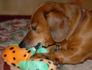 Cheap dog toys are important. At Walmart this week I found a bag of four loofa dogs for $5. In colors of purple, black, neon green and orange, at $1.25 I did go over my $1 rule for a stuffed toy, but it is Halloween. Check through the Halloween decorations area, not the pet products department.