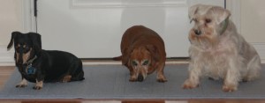 These delicate wolf descendants don’t want to get wet. It is raining, and it will rain all day and night. When I am out of sight of the back door, the potty pads will be popular. I guess they also want their privacy.