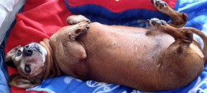 When a dog shows you his tummy that tells you he accepts your authority. Also in Jake’s case it means he feels safe enough in his environment to sleep on his back. This goes back to a dog’s wolf ancestors. The tummy was one of a wolf’s vulnerable spots. To show their acceptance to the alpha wolf’s authority, other wolves would show submission by getting on their backs. If one or more wolves in a pack were not submissive, fights would ensue.