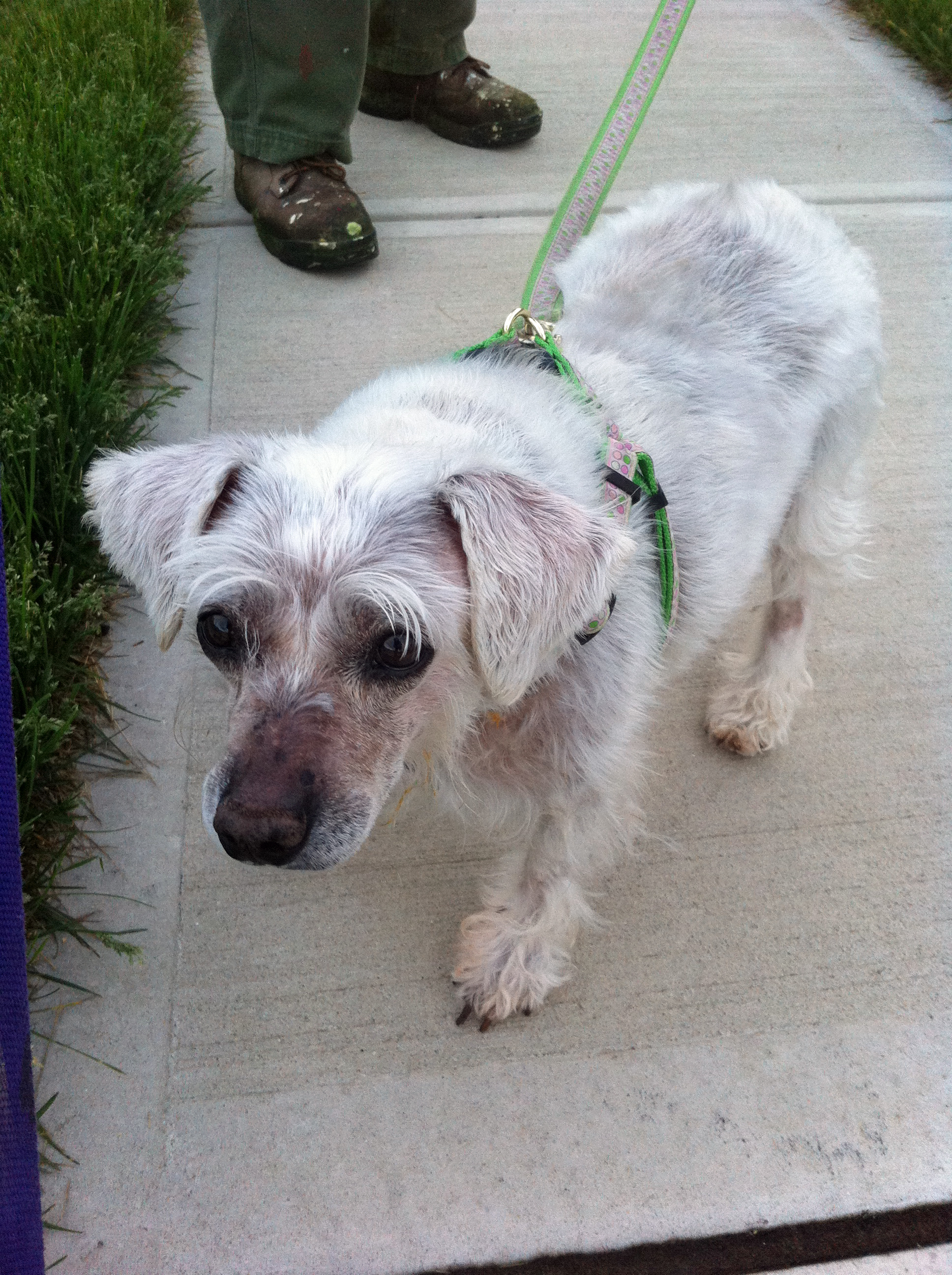 Out of the puppy mill for more than two years and about 1 and ½ years with us is not long enough for her to enjoy life as a normal dog. She now can feel the earth beneath her feet and the sun and wind on her face. She is clean and groomed regularly.