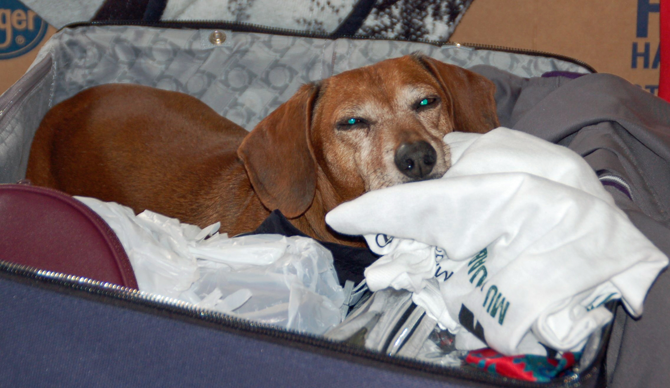 Jake learned years ago what a suitcase means. He gets excited when it is packed.