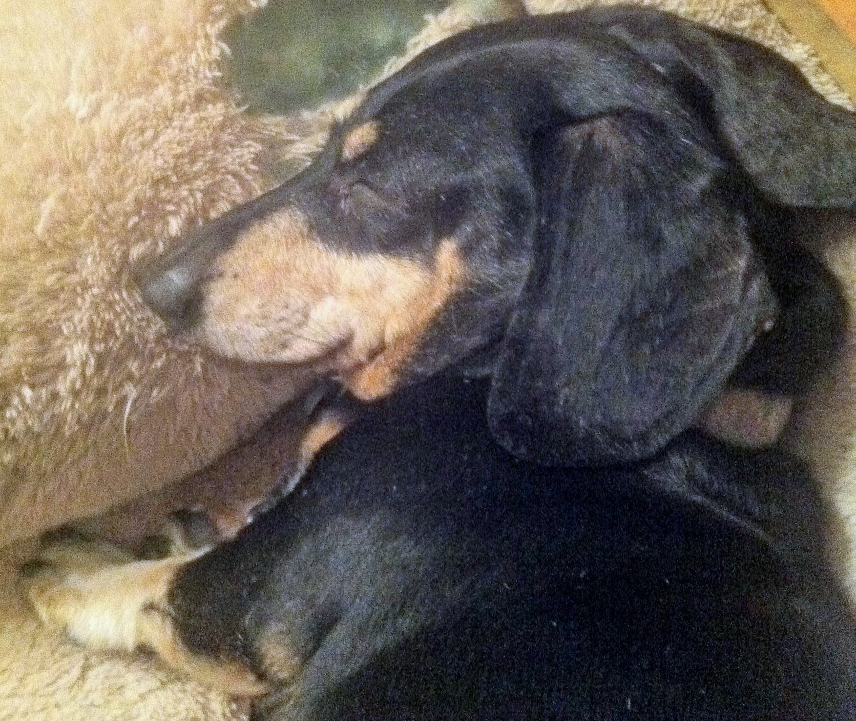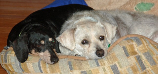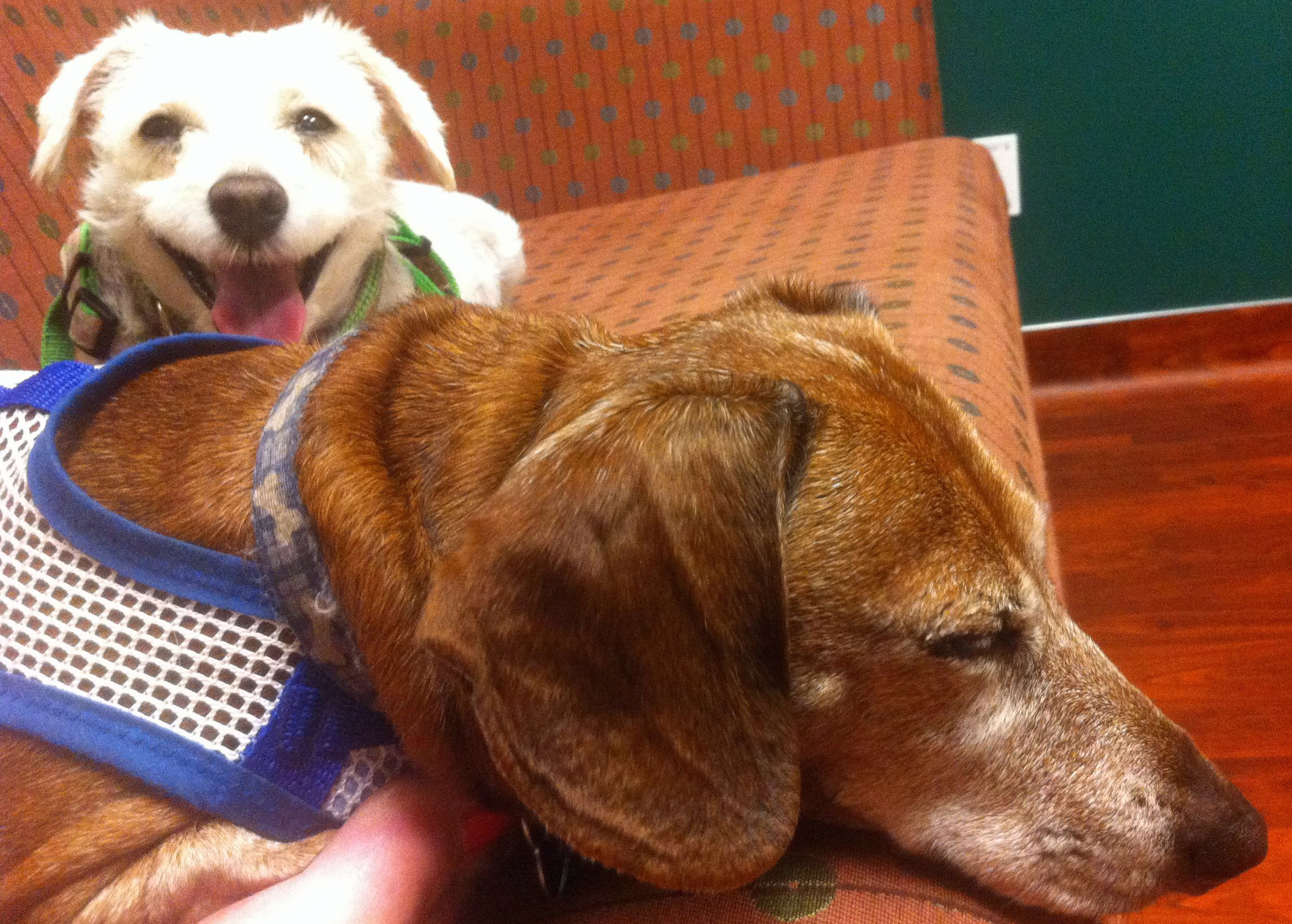 Windy and Hope kept each other company, and kept an eye on my husband for a week.