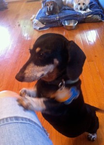 Don’t tell Hope she is sick. Two evenings ago when she had bloody diarrhea she was demanding a walk. She is eating well – finishing everyone else’s dishes – and is acting normally. We have medication to treat the diarrhea.