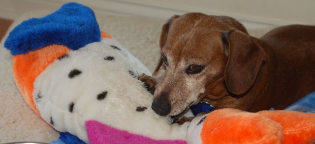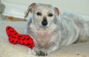 Hope, though, is active. She still nags us for walks, and she gets one every day. She explores the back yard and likes to look out the bay window in the living room to bark frantically at squirrels, rabbits, people and cars. Her appetite is good and she is bright-eyed. We are not ready to give up.